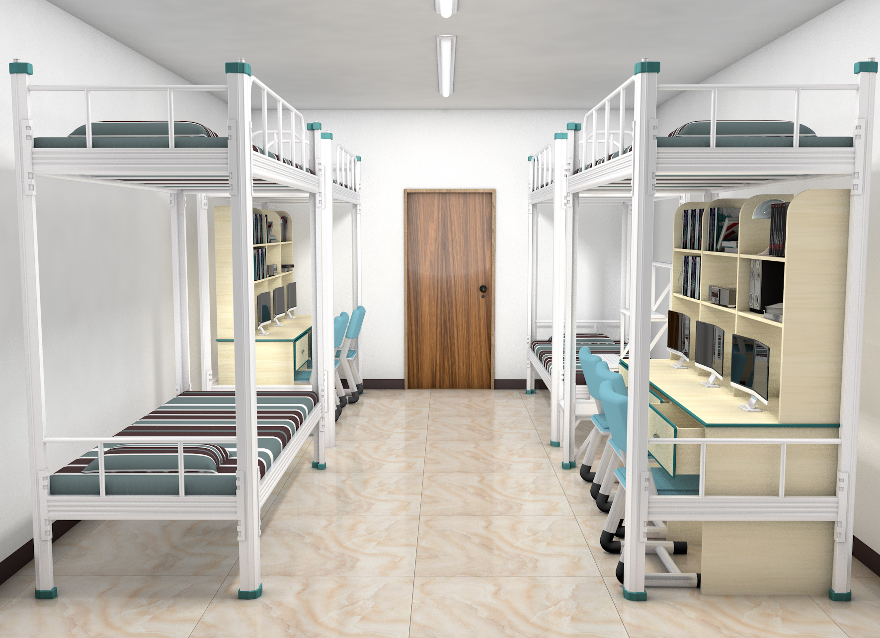 现在经过改良,都是用型材做的上下铺铁床,型材铁床是采用加厚冷轧钢制作,整体结构非常牢固,而且采用四卡扣设计,不会产生异响和安全事故。