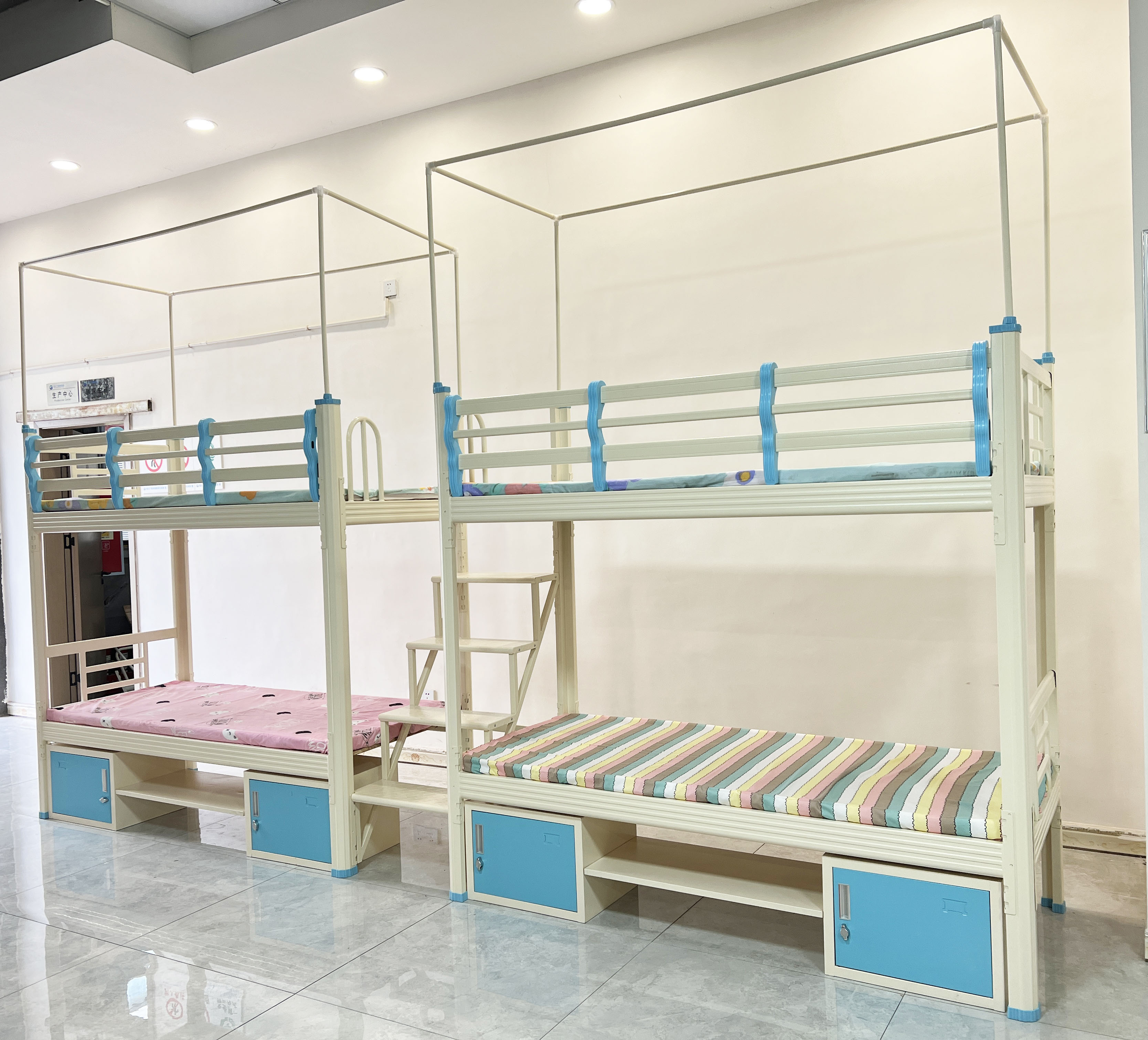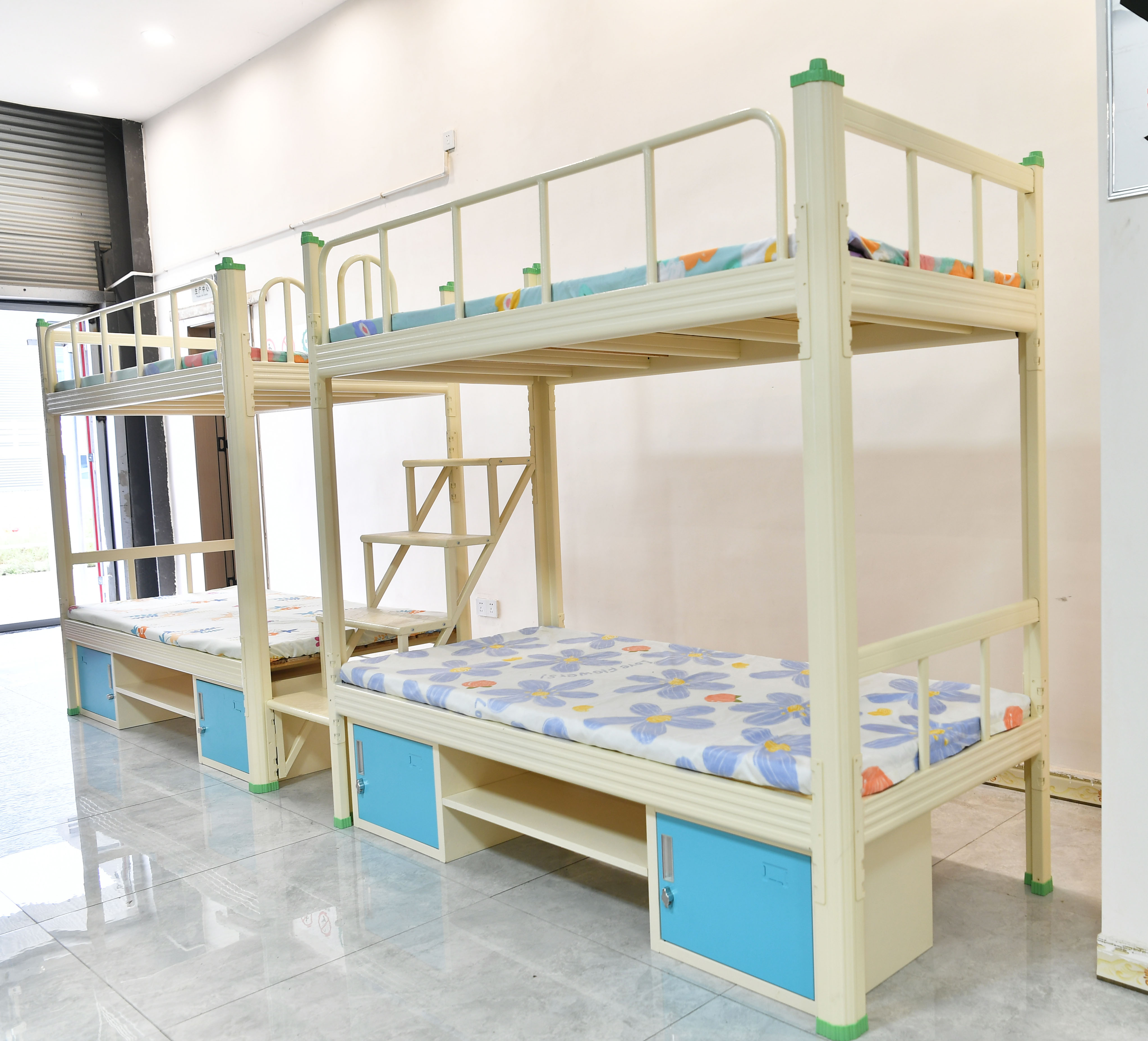 现在企业定制双层铁床,讲究性价比和空间使用率,不再讲究花里胡哨的铁床