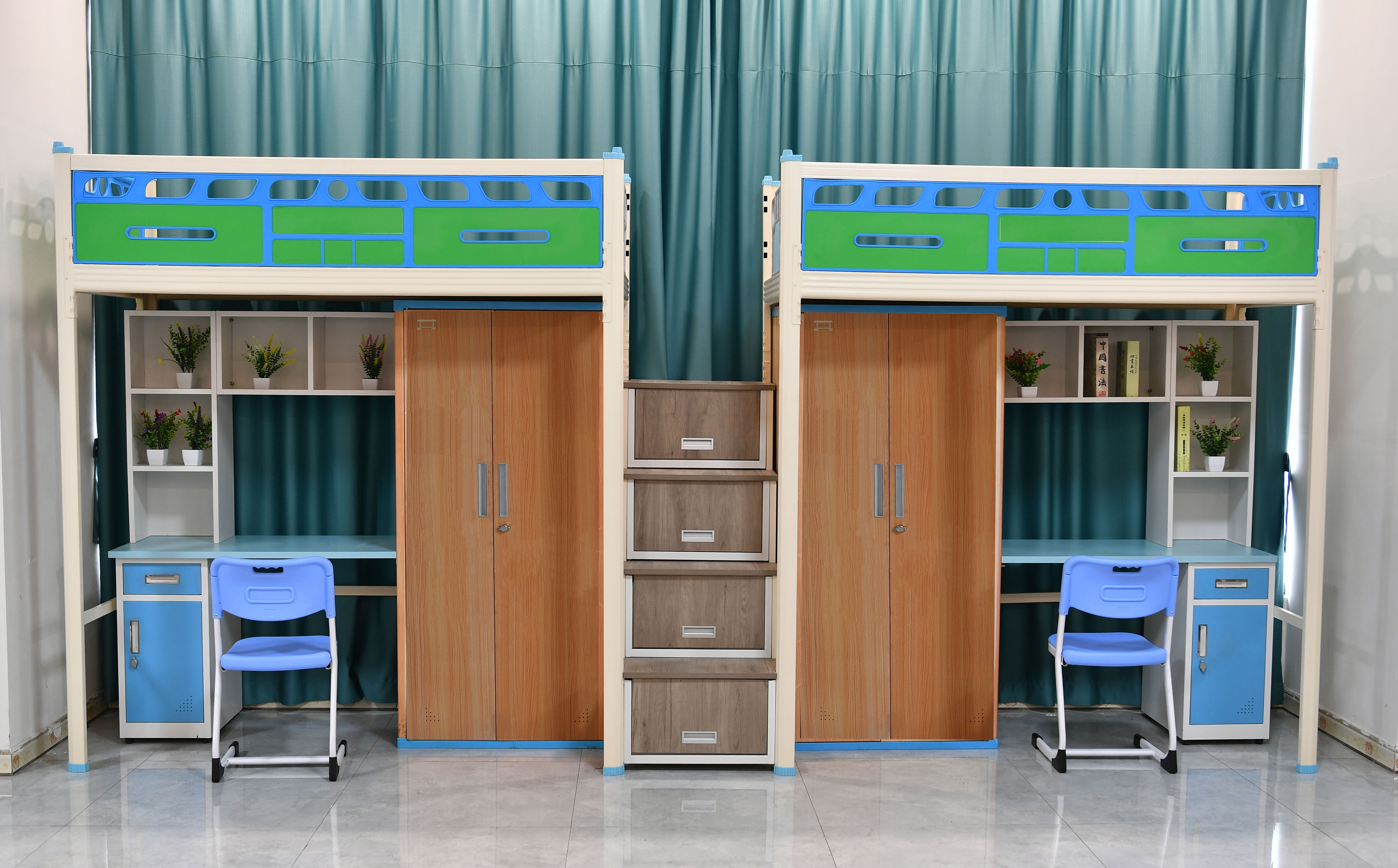 现在的大学宿舍都是选择这种上床下桌公寓床,这种铁床不仅隐私性高,使用起来也是非常幸福的,
