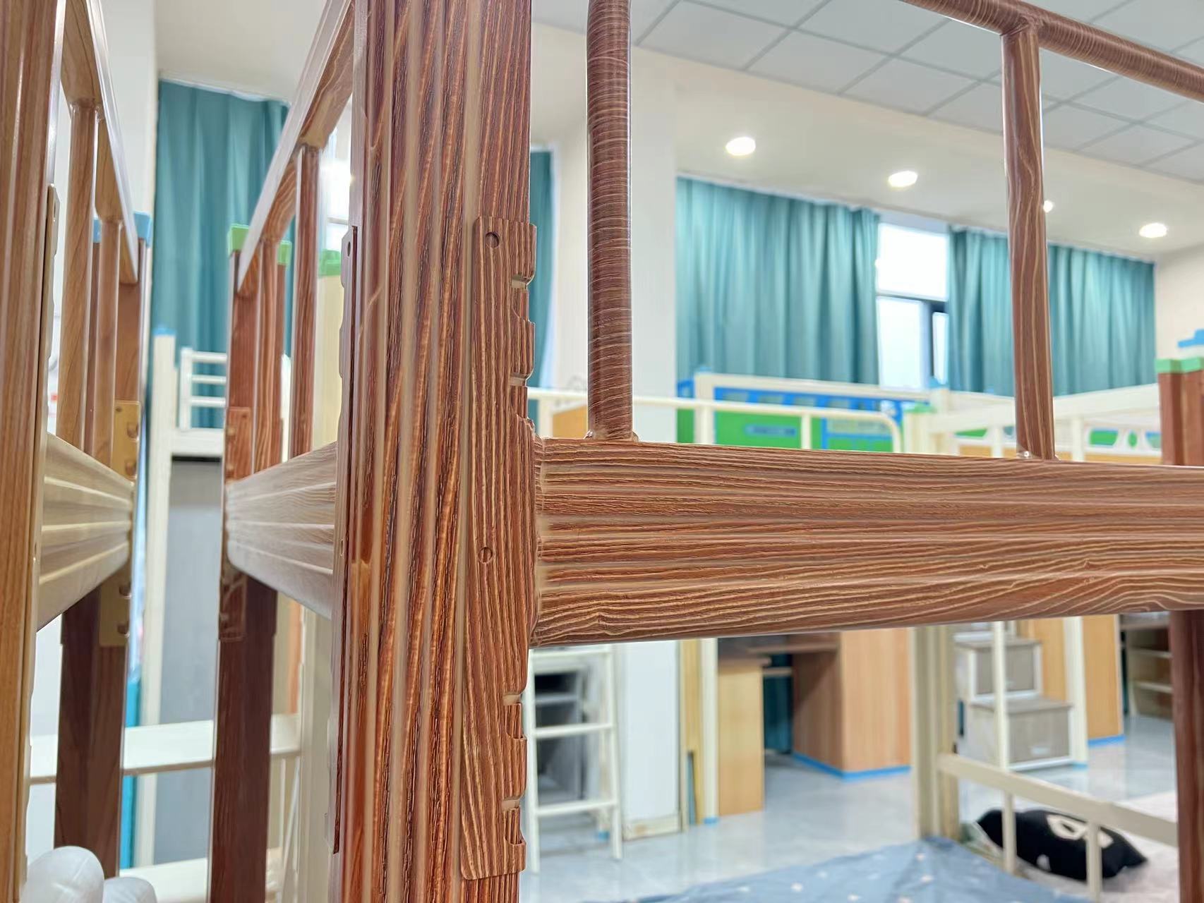 【概要描述】木纹铁床是2024年的宿舍铁床流行方向。 既有木床的外观,又有铁床坚固耐用的特质,是非常不错的一款宿舍用的上下铺铁床。 整体材质采用优质的加厚冷轧钢一次成型,让铁床和木床的优点相结合,造就了这款木纹铁床。 防火防潮耐用,这是木床想都不敢想的优点,但木纹铁床做到了,而且和木床的外观相似度99% 所以木床好还是木纹铁床好呢?高下立判。 如果需要木纹铁床,就来广前智能家具看看吧~